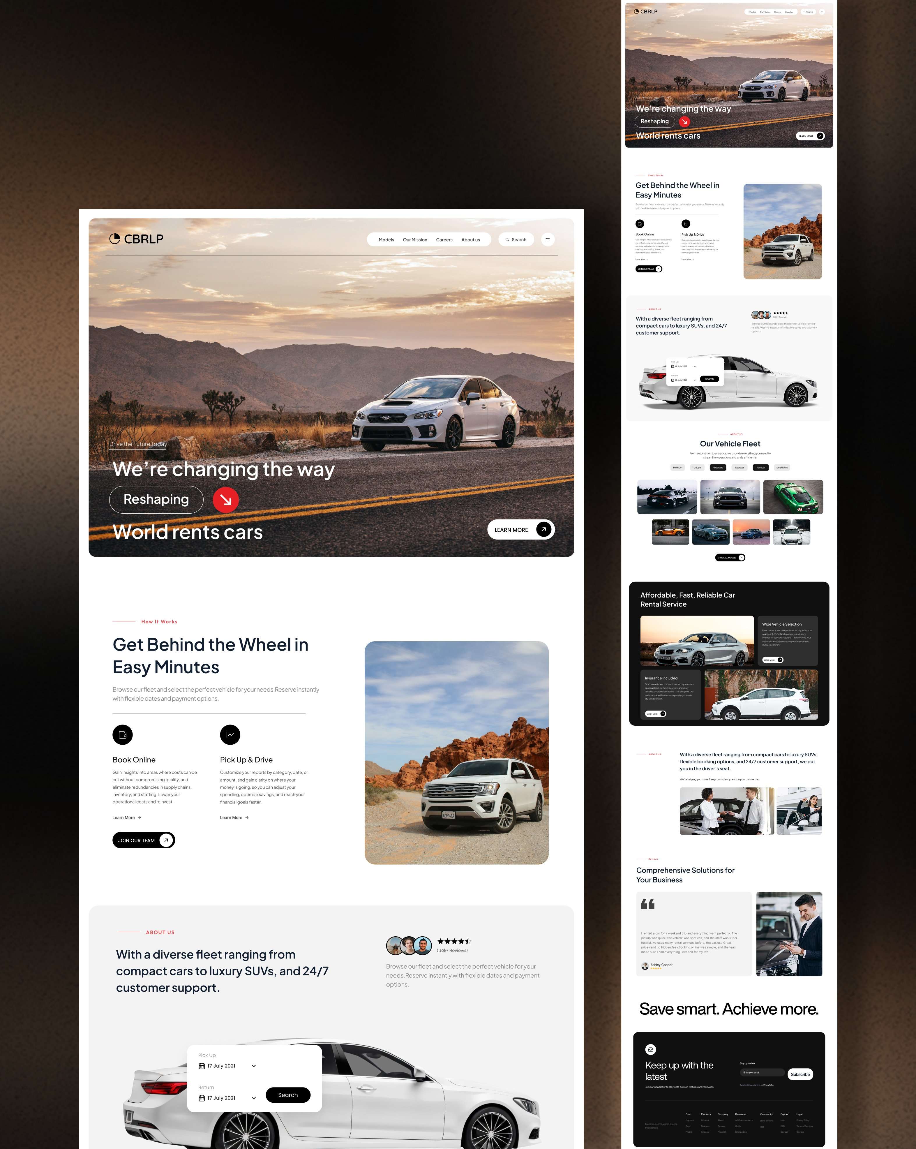 Modern car rental platform with clean design, vehicle fleet showcase and seamless booking functionality.